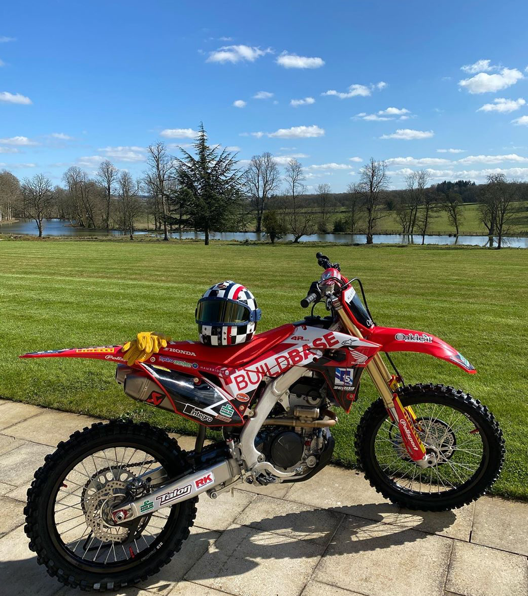 The profile is a standard F1-type full-face silhouette: a closed chin bar with an open eye port, which many riders choose to wear with glasses or riding goggles.